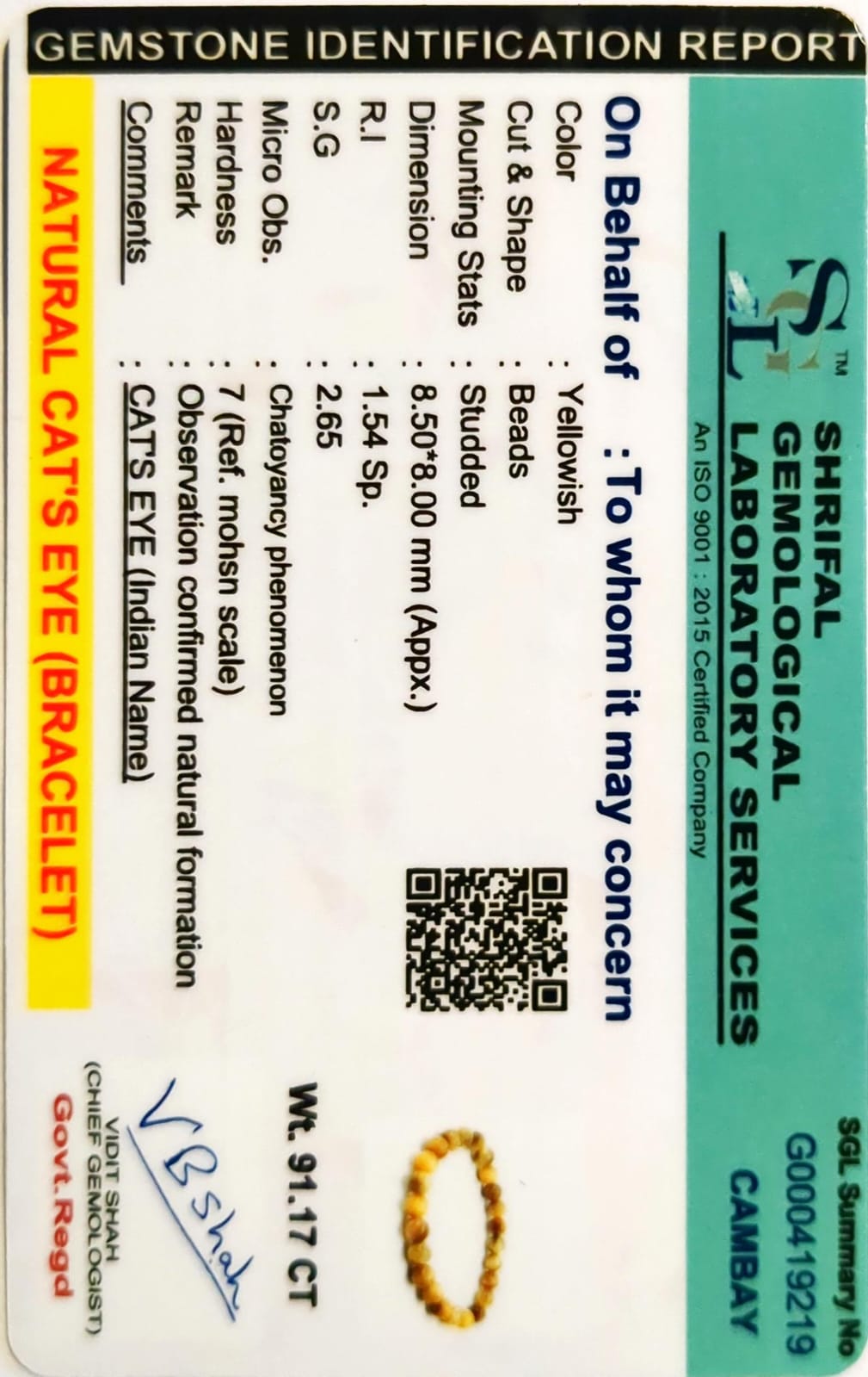 Certified Cat’s Eye Bracelet for Protection, Intuition & Good Fortune | Shields from Evil Eye | With Certificate