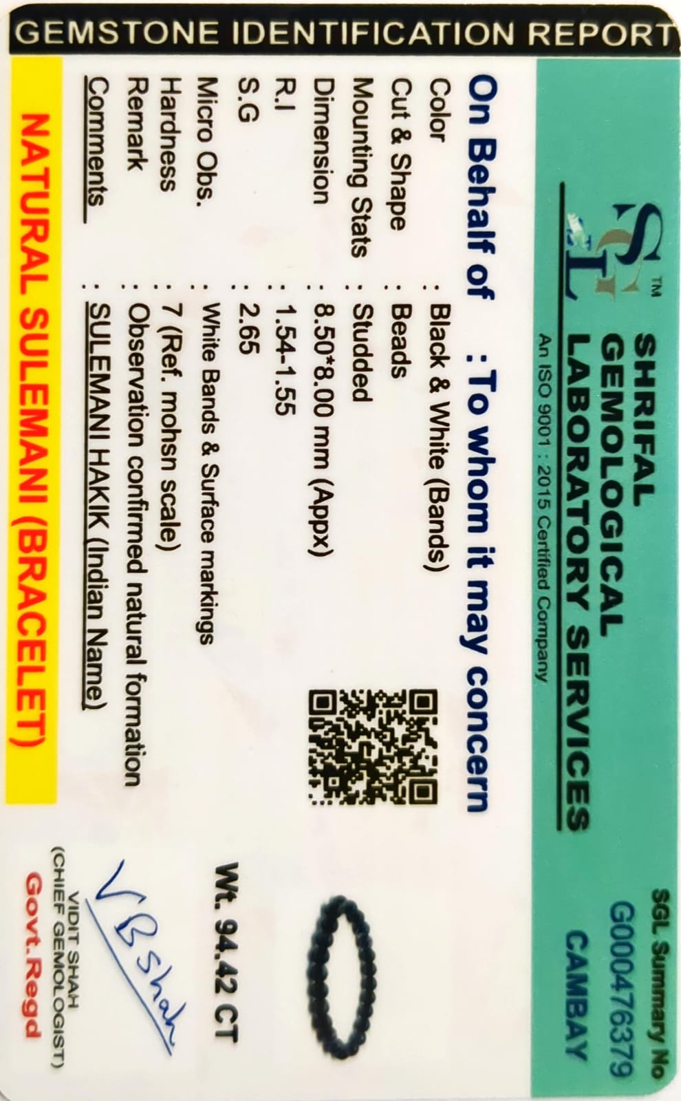 • Certified Authentic Stones – Certificate verifies genuine Black Tourmaline, Sulemani, and Tiger Eye.